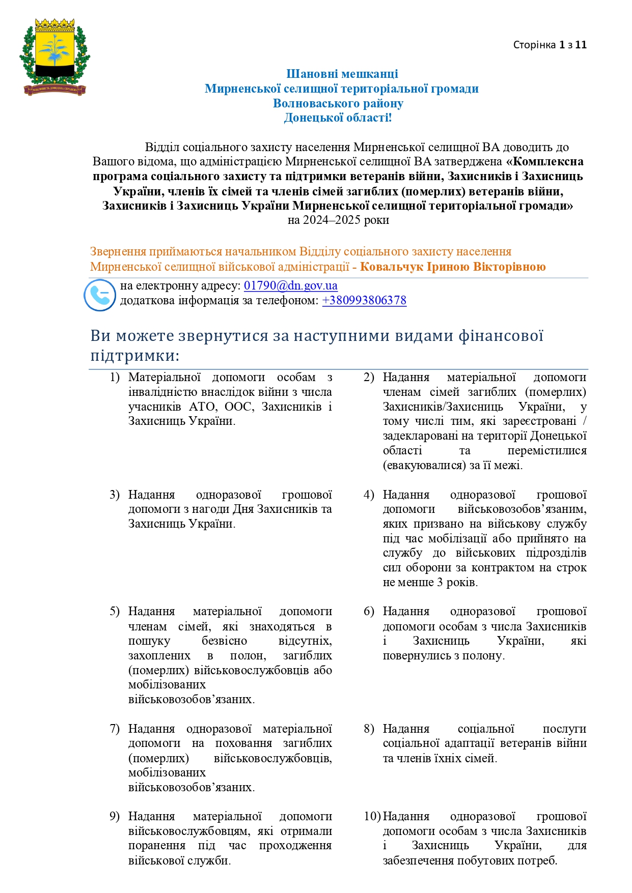 Склад Молодіжної ради при Мирненській селищній військовій адміністрації Волноваського району Донецької області