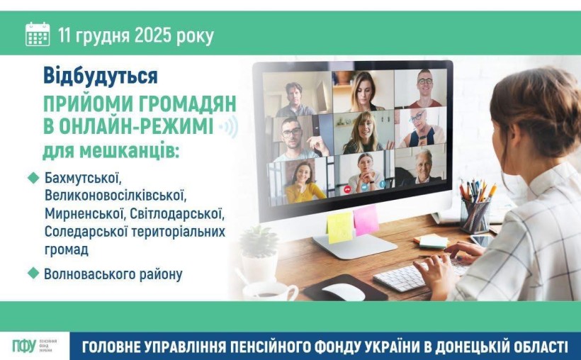 Фахівці Головного управління Пенсійного фонду України в Донецькій області проведуть онлайн-прийом для мешканців Мирненської селищної територіальної громади та всіх бажаючих внутрішньо переміщених осіб в м. Пʼятихатки.