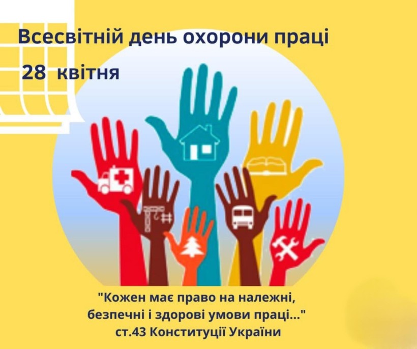 Щороку 28 квітня в Україні відповідно до Указу Президента України від 18 серпня 2006 року № 685/2006 відзначається День охорони праці. Ця дата покликана привернути увагу суспільства, органів державної влади та роботодавців до важливості створення безпечних і здорових умов праці, запобігання виробничому травматизму та професійним захворюванням.