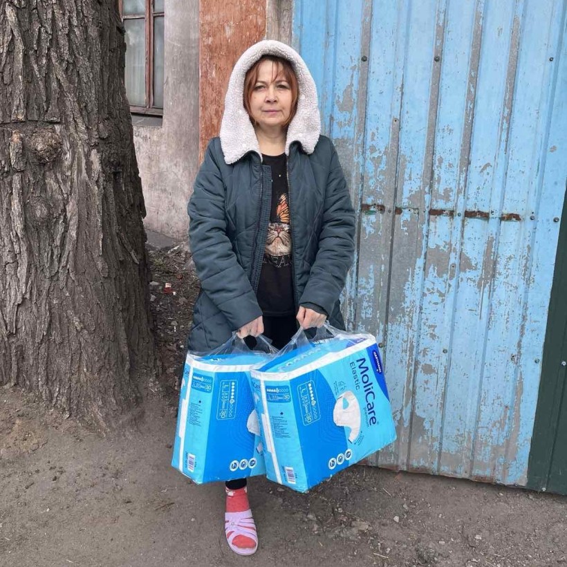 Днями начальниця Мирненської селищної військової адміністрації Надія Сердюкова особисто доставила гуманітарну допомогу, підгузки для дорослих, мешканці нашої громади, яка є особою з інвалідністю, має обмежену мобільність та тимчасово проживає у місті Кам’янське Дніпропетровської області.