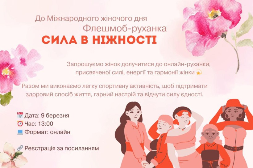 З нагоди Міжнародного жіночого дня запрошуємо жінок долучитися до онлайн флешмобу-руханки «Сила в ніжності».