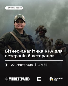 Детальніше – на спільному вебінарі Українського ветеранського фонду Мінветеранів та команди GoodWill Tech. Це перший етап програми, яка допоможе Захисникам і Захисницям здобути новий фах: від знайомства з RPA до подальшого навчання для відібраних учасників.