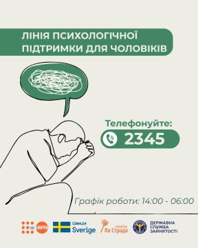 В листопаді свою роботу розпочала Лінія психологічної підтримки для чоловіків 2345 на базі ГО Ла Страда-Україна/La Strada-Ukraine