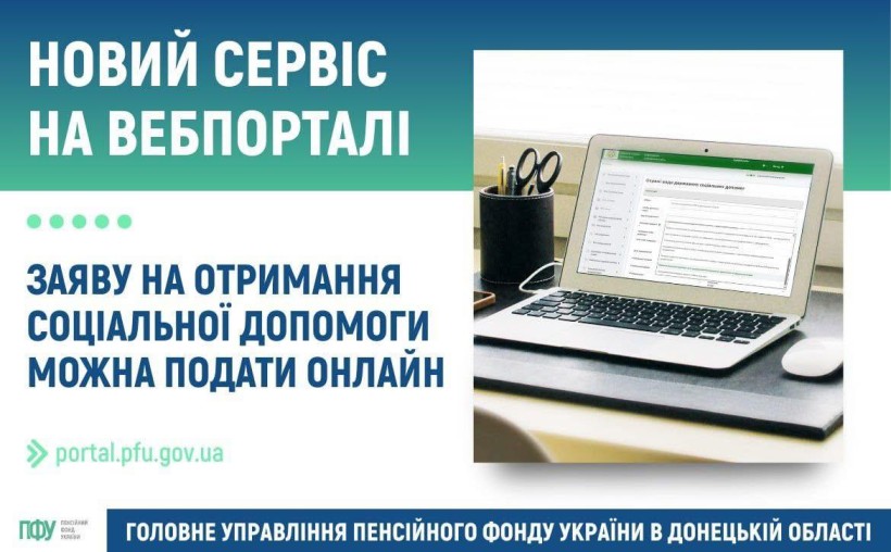 На вебпорталі Пенсійного фонду України portal.pfu.gov.ua доступний новий сервіс для подачі заяв на призначення деяких видів державних соціальних допомог онлайн.