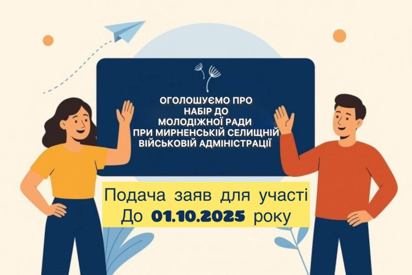 Мирненська селищна військова адміністрація Волноваського району Донецької області повідомляє, що 14 листопада 2025 року в режимі онлайн відбудуться установчі збори Молодіжної ради при Мирненській селищній військовій адміністрації Волноваського району Донецької області.
