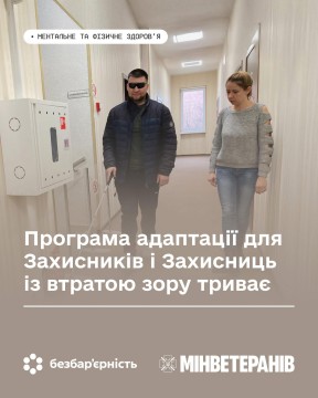 Мінветеранів нагадує, що ветерани й ветеранки, які повністю або частково втратили зір унаслідок війни, можуть долучитися до спеціалізованої програми адаптації.