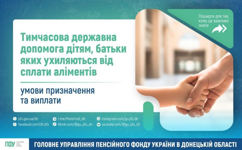 Батьки зобов'язані утримувати дитину до досягнення нею повноліття. Якщо батьки проживають окремо від дитини й не виконують своїх обов’язків, дітям, батьки яких ухиляються від сплати аліментів, або місце проживання чи перебування їх невідоме, або вони не мають можливості утримувати дитину, призначається тимчасова державна допомога.