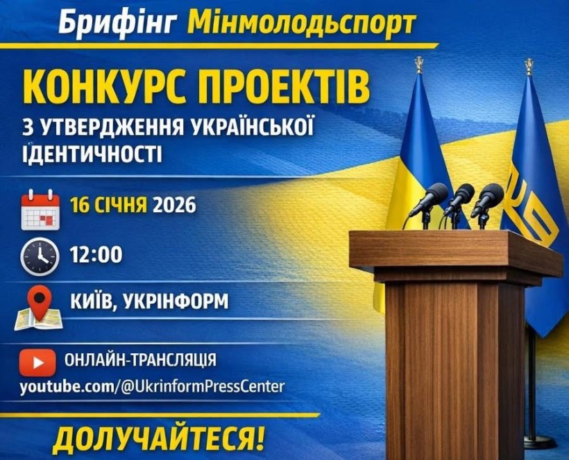 16 січня 2026 року о 12:00 відбудеться брифінг щодо конкурсу з визначення проєктів з утвердження української національної та громадянської ідентичності, розроблених інститутами громадянського суспільства, для реалізації яких передбачена фінансова підтримка у 2026 році.
