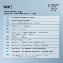 Якщо ви або ваші близькі постраждали внаслідок збройної агресії російської федерації — маєте фізичні або психічні травми, зазнали шкоди здоров’ю, пережили насильство, були незаконно ув’язнені чи пережили катування — подавайте заяву про репарації до міжнародного Реєстру збитків для України (RD4U) на порталі Дія.
