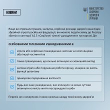 На порталі Дія доступні 13 категорій заяв про шкоду внаслідок війни. П’ять із них стосуються безпосередньо здоров’я: