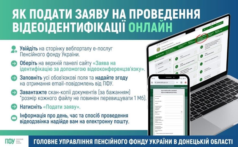 Заяву на проведення фізичної ідентифікації в режимі відеоконференцзв’язку також можна подати через контакт-центр Пенсійного фонду України. Детальніше за посиланням (https://t1p.de/zd8f1).