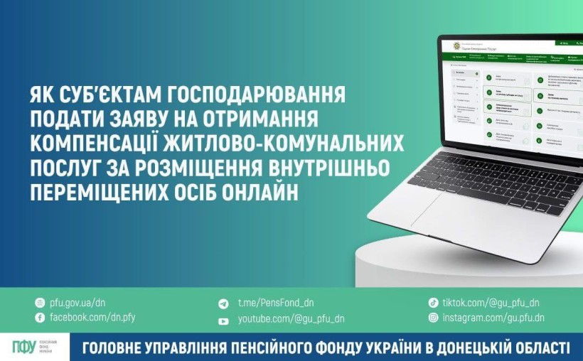 У меню ліворуч знайдіть блок «Комунікації з ПФУ» та оберіть пункт «Звернення для отримання компенсації ЖКП за розміщення ВПО». У вікні, що з’явиться, натиснути «Подати заяву».