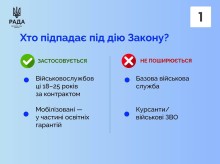 Дія Закону не поширюється на строковиків та курсантів військових закладів освіти.