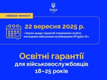 22 вересня набирає чинності Закон № 4562-IX про важливі освітні гарантії для молодих військовослужбовців віком 18-25 років.